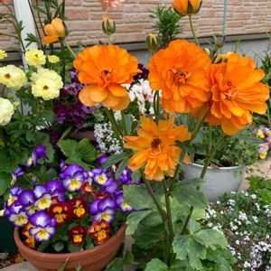 ラナンキュラスラックス ガラテア 混じり(⚭⃙⃚⃘᷄⑅⚭⃙⃚⃘᷅)ッケ無しの 超オレンジ🍊色 花びらの形が昨年 フィンガービスケットみたいな細長いものだったのに 丸い? 咲き進むと変わるのかな•́ω•̀)?