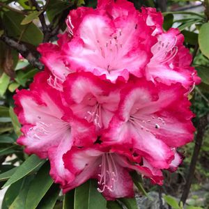 石楠花シャクナゲ 何かこのハッキリした色とエキゾチックな葉が、外国にいるような錯覚を起こします🤣 亜熱帯地方とか東南アジアにいるような😳