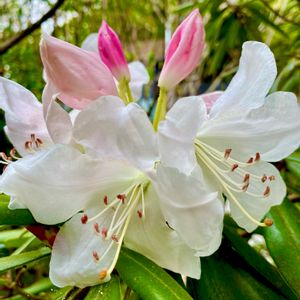 シャクナゲ 初めの蕾はピンクなのに薄ピンクから薄々ピンク…咲くと真っ白になります🤔💕 不思議だけど綺麗‼︎ 💗🤍💚🤗