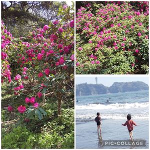 お天気の良い週末でした☀️ やはり、湘南のお花の開花は早いですねぇ、、 シャクナゲが満開でした。 海なし県に住んでいると、たまに海が見たくなりますね、、、😍 入らないで💦って言っても、、むりむり😂😂