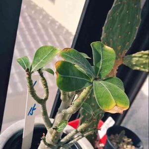 初秋に買って元気がなくなっていったアデニウムからつやつやの新芽が出てきた🌱
