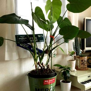 おはようございます♪( ´▽`) 大きくなったモンちゃん♡ 我が家で1番最初にやってきたグリーンです。 植物の知識が全くなかったので、毎日お水をやり、直射日光に当て☆になりかけました>_< 2年くらいたって今年は葉っぱが増えて復活してくれました〜‼️強い強いモンステラ!!諦めずに育ててよかった( ´ ▽ ` )