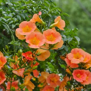 凌霄花 (ノウゼンカズラ) 別名 乃宇世宇加都良 (ノウショウカズラ) 夏から秋にかけ橙色や赤色・ピンクの 美しい花を付け 気根を出して ,樹木や 壁などに付着して蔓を伸ばします。 昨年 ピンクのノウゼンカズラを近所で 見かけたおぼえが…どこだったか…