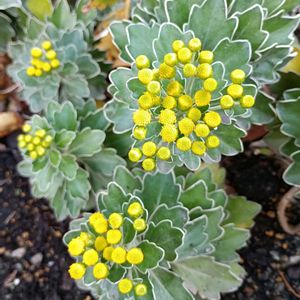 おはようございます♪ 我が家のイソギク🌼🌿 ❶❷ 可愛いポンポン状のビタミンカラーのお花と葉の縁取りが白くオシャレ ❸増設したプチ花壇に咲いています 9月にフラワーセンターの秋フェスでお迎えしました 控えめな花姿ですが花言葉が素敵 「感謝・清楚な美しさ・大切に思う」 お迎えして良かったです 今日も穏やかな1日でありますように🌼