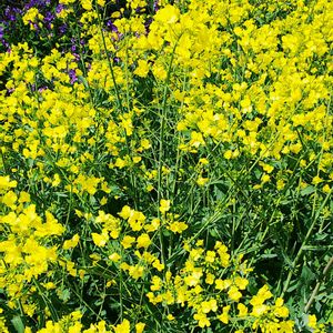 田舎の道端でこの季節いつも見る景色💛🍀💜🍀💛 寒い日が続いていたけど今日は風もなくて春で~す🌸☺️ ①菜の花 ②紫ハナナ 道端一面に咲いていて綺麗でした✨💛✨💜