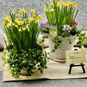 区役所へ用事があって行ったら 春のお花が ミニスイセン可愛いですね 🏷️元気いっぱいビタミンカラー