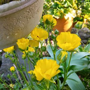 アリッサム寄せ植え 両方とも盛りもりに咲いてきました。 ラナンキュラスラックス 2年目 咲き出してきました。黄色はアルテミス 赤は色が代わると思うから咲かないと? 玉咲きサクラ草 昨日 撮りました。 アメリカシキミ 今たくさん咲き出してます。