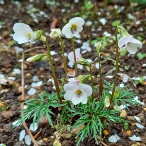 こぼれ種のビオラさんとともに。。 ずーっと咲かなかったヒトリシズカ 家には合わない子なんだと諦めていたら今年は何故か花が咲きました。 離れた場所でも同じ様に。。 やっと家の子になれたのね。
