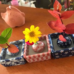娘からのお土産💕 可愛い花器セット 後ろのイノシシの置物も🐗