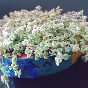 娘が学校で作ってくれた鉢 とても浅い(笑)(´▽`) セダムを植えてみた