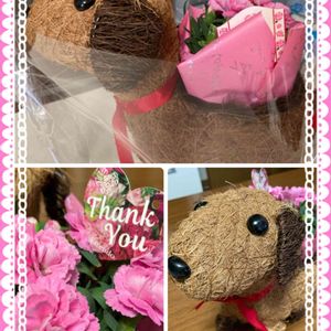 お疲れさまです 長崎は、今日も🌧️だった。( =^ω^) 予期せぬプレゼントが届きました。💗 スタンディングブーケ💐だそうです。 実は今日 (*^-_ゝ-)ウン十才の誕生日🎂です。😓 娘に感謝です💗 たまたま作っていたリメイク鉢とお揃い😍