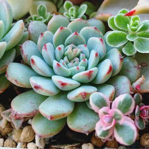 🏷5日はごっつご機嫌 🏷毎月5日は群生の日 トロピカルガーデンさんの 楽天ショップオブザイヤー記念set届きました🍀 トロピさんは最近おまけや名無し多肉ちゃんが一緒なので、ご無沙汰しておりましたが… 群生に、持ってないのやら10種類setで喜んでたのに… 名札のホッチキスを外す時にころころ転がしてしまって名前が分からなくなっちゃった🙀 それもよく似た多肉ちゃんが😿 多分右がPink Queenと思うけど… Prism持ってるけど、うちの子とは大違いで😹 もしおわかりになる方いらっしゃったら お願いします🙏 10個中ベンバディス、Prism、ブラッドドロップ、レッドベルベット被り💦 お気に入りは、アランフェスと ブルーミニマ群生😻 チョンパした親株の茎が約2㌢もある💓 かわちい多肉ちゃんにごっつご機嫌~~~💞 昨晩熱が37、9度になり、コロキチかと心配したけど… とりあえず微熱までに下がったけど、喉の痛みはまだある💦 大根はちみつ作って民間療法も🍯 体はそこまでしんどくない😽 どっちにしても病気持ちの母に うつさないようにしなければ⚠️ そしてまた今日も( 。・ω・。)ノ 凸ポチッ