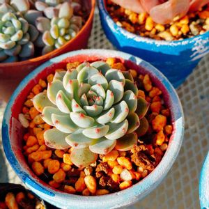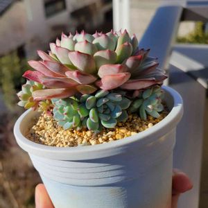 冬晴れの今日。 レッドペリーが紅葉してました。 日焼けしてる子が赤くなってるのでちょっと黒ずんでますが可愛いです😊 七福美尼は去年3月にカットしてここに植えたのですが、こっちはスクスクなのにお母さん株は悲惨だったので根をオルトラン水漬けして洗い乾いたので今日植え替えました。 あまりにもずっと放置だったのでこんなに可愛い子だったのを忘れてました…😅 ミニマ母さんにもなんかしてあげないとなぁ🙄