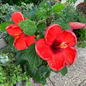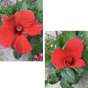 おはようございます😃 今日は、くもり一時雨 気温は、21度から27度の予報です。 昨日から、朝の気温が下りました。 昼間は、まだ暑い🥵ですが😊 我が家の赤いハイビスカス🌺 アドニスレッド 長く咲いてくれる花🌺 ダークグレイス 小さな鉢植えで見切り品で HCに有りました。 🏷️を見て、少し🤏強烈な色と思い好奇心で迎えました。 ファラオ 八重咲きの1度に数個蕾をつけ 咲いてくれます。 頭が重いのか? 満開になると、下を向いてます。 真っ赤な火曜日に参加させて頂きます。 今日は、朝から雨☂️が降ってます。 気温も下がって秋🍂が来た感じがします。 祝日ですが、お仕事の方 お疲れ様でございます。 気温の変化で、体調を崩さないようにしましょうね😊 今日も健やかで いい日になります様に🤗