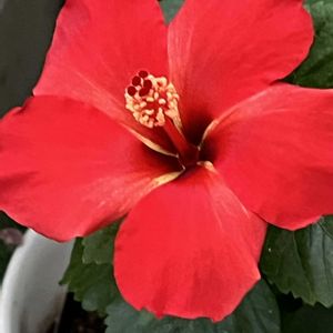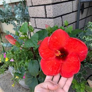 ハイビスカスが咲きました🌺 花びらの縁がちょっと丸まっていますが、サイズはいつも通りで、パワーをもらえる真っ赤❤️ 1月の3輪開花に続いての開花です✨ この前に2つ蕾はついていたのですが、開花を待たずに落ちてしまったので、今回の開花がよりうれしい😆 それにしても、こんなに頻繁に咲いてくれることにびっくりです😳 ハイビスカスは夏のお花ではなかったのでしょうか😂 あたたかい日中は外に出し、夜は玄関内にしまう、を続けた成果かな😊
