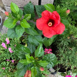 玄関先のお花たち❤️ 雨上がりの今日は、赤いお花たちの開花ラッシュ😊 ハイビスカスは、今回も大きくキレイな花姿🌺 カランコエは、株はたくさんあるのですが、お花が咲いているのはこの子だけ🎶 前回のお花終わりにバッサリカットしたのが良かったのかな? ずっと玄関内で育てていたのですが、スペースの問題で、この春から玄関先の屋外栽培に変更しています😅 寄せ植えからのバーベナは、一時お休みしていたお花がまた咲き始めました😆 うどん粉病もスプレーのおかげで、一時より落ち着いてきました🎶 やっぱり鮮やかな赤は目を惹き、パワーをもらえます❤️