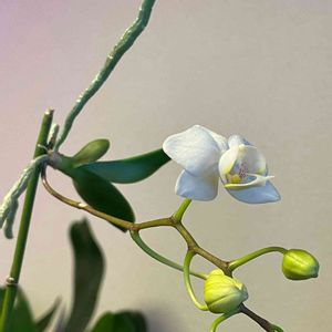 胡蝶蘭 ブランシェ 子株からの開花なのでお花が3cmぐらいのミニりん。ふたまわりぐらい小さいかな。