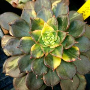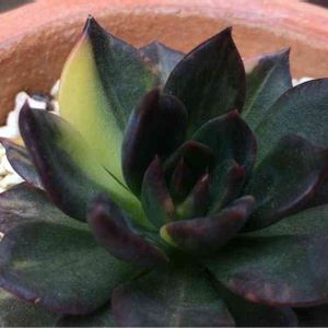エケベリア属。ブラックプリンス錦。多肉店さんの展示品。 ブラックプリンスの 斑入り品種