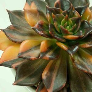 ★ブラックプリンス錦★ 最初は斑が黄色でしたが、紅葉して?綺麗なオレンジ色に… 初めて買った韓国産の多肉ですが、箱を開けた瞬間、その美しさに感動しました(*´ー`*) ただ、到着に一週間ちかくかかり、箱の中で少し徒長(笑) 美しすぎて…気にしなーい♪ ちなみに、6個葉挿しを作りましたが、1個しか斑は入りませんでしたf(^_^)