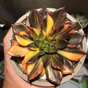 コンニチハー((((o´ω`o)ノ 2018年11月11日 午前10時48分 多肉コーナーは約29.5℃ ブラックプリンス錦[エケベリア] 上手く覆輪斑になりました。 ブラックプリンス系は安くなったなぁ。 今日は日差しもきつく、気温もまだまだ上がりそう。 小苗ちゃん達には頻繁に水をやっているのでこのまま日に当たり続けると ヤッベッゾ(*´Д`*) 5時間直射日光を当てたら後は遮光かけます( ・ω・)ゞ