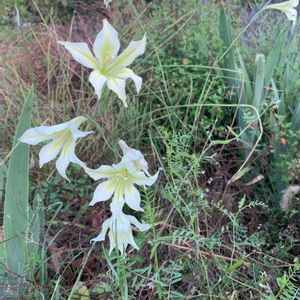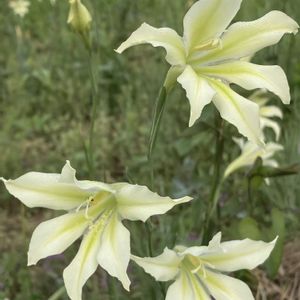 《グラジオラストリスティス》 約4フィート(1.2メートル)に達する草のような背の高い線状の葉🤭 春に咲く、芳香のあるクリームイエローのチューブ状の花🌼 繊細な花を支える高い花茎が植物の高さを増す🌼 風になびく様子がなんとも爽やかな感じ🤭 ダンディ邸の庭にあちこちに咲いています🌼