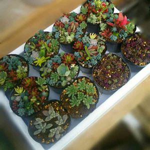 おぶ太郎さんのマネッコして セダムmix作ってみた🎵 微根のクラッスラも混ざってるけど とりあえず完成✌ ついでに瀕死やった姫秀麗と ピンキーもまとめてチマチマ(笑)