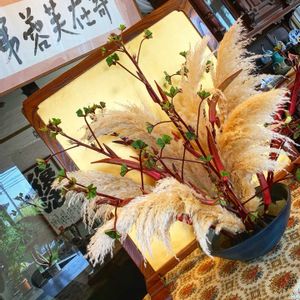 9月の生け込み パンパスを馬のたてがみに クルクマを提灯に 葉物をうちわに花を花隊や勢子に見立てて 斜めに生けて勢いを 熊本の秋の風物詩でもある藤崎宮の例大祭をテーマにしています。 祭囃子が聴こえてくる