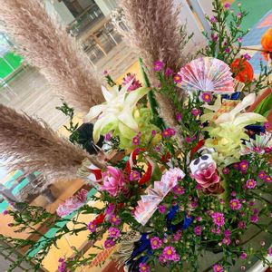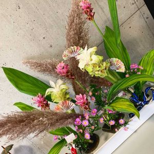 9月の生け込み 小花が一斉に開花した鮮やかさをお祭りの賑やかな空間として表現してみました。