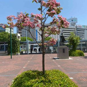 下駄を鳴らしてやつが来る〜腰に手ぬぐいぶらさ〜げて〜♪学生服にしみこんだ〜男の臭いがやってきそうな世界観の一枚📸 主役は大好きなハナミズキさん💕 少し散り始めたけど、それもまた良し♪ お昼休み岡山駅にて