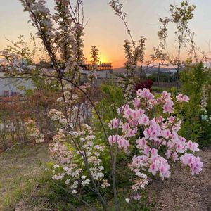 Good evening 🌇 遊び疲れた 植物園の帰り🪴 これで 春シーズンも終わりかなと つぶやいて 2人も楽しんでくれたかな😊 記念に📸