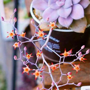 ペンタン開花。 ダイソーのすのこで背景を作ったよ。とっても使えるー😊
