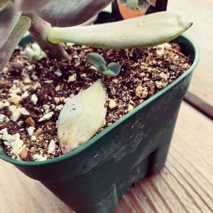 ペンタンドルムの葉挿しにしっかり新芽が出てきました〜😍 しっかり大きくなります様に😉🎵