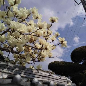 あの塀のお宅の 🤍ハクモクレン🤍の花… ☁が多くて…でも…💙青空バックに… ねぇ😀!! 純白マニア…🏷 白い花マニア…🏷 ウキウキわくわく♪🏷 しあわせ運べるように…🏷🍀… 今日も元気で… お疲れ様…ゆっくり寝(*˘︶˘*).。.:*♡おやすみ〜なさ〜い😪😴…