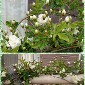 🍀☆白モッコウバラ☆🍀 介護施設の南側 太陽🌞をいっぱい浴びて頑張って咲いてました☆🍀 蕾が開いて満開になればもっと綺麗でしょうね(^ー^)