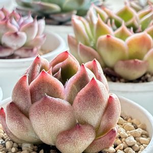 おはようございます☀️ 今朝は 久しぶりに多肉を🤳 お気に入り3種🌵 1 名札を無くして名無しさん 昨年可愛らしくてお迎えした子 今年も元気に可愛く色づきました✨ 名前が分かりました!! アルケイン お花のようです🎶 2 ピンクウィッチ🩷 まだピンクが薄め これからもう少し濃くなるかしら💕 夏を越せてよかった😊 3 2種一緒に 4 多分レティジア ゴールド💛 あるいは レティジア あまり大きくならないけど 中心の黄色が綺麗✨✨ 2階のベランダで たっぷり日に当たり これから綺麗になりますね⸜❤️⸝