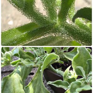 アイスプラント(葉物野菜)表面のキラキラとした水滴粒は、塩分の結晶で、サクサクとした食感と塩味が特徴😋収穫前1週間に2回1・2%の塩水を与えた 今日は、サラダに入れた🥗