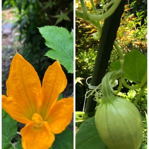 そうめんかぼちゃ 糸南京 成長中💕 雄花がなくて、ズッキーニを付けたんだけど、大丈夫かなぁ⁉️ これが一株チャレンジの辛いところ😅