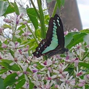 こんにちは ランタナとアオスジアゲハ(蝶)
