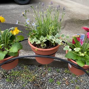 先日届いたガーベラを植え替え、寄せ植えした鉢と一緒に並べてみました。 暑さでしなだれていますが、たっぷりお水をあげたので明日の朝には元気になってくれてると良いな🍀
