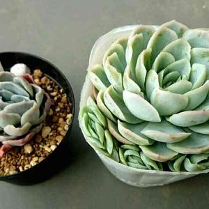 多肉植物園ナイト営業中✩.*˚ すっかり紅葉も終わり 元気いっぱいの『エレガンス』 同じ『月影』でも『メキシカンスノーボール』でお迎えした苗の方が厚葉です。 もうひとつの『月影』は前回カットして 現在、摘芯2頭までは出ています。
