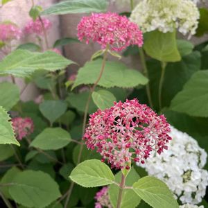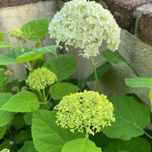 ピンクアナベル だいぶん色づいてきました🤗 アナベルとピンクアナベルの 大きさが全く違う〜
