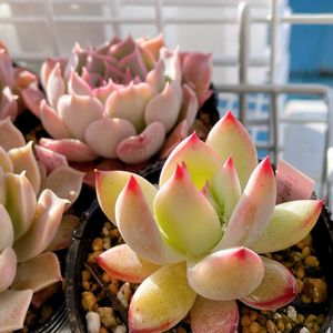 20250118 今日は暖かいので、久しぶりの水やり。本日はベランダ葉挿し組。 ①オンスロー(DAISO)さん。親苗はすっかりくすみカラーですが、葉挿し組はピンクの爪がちょこんとのって、ちょっと可愛いんじゃありませんか〜😘 ②ラパス・リラ(sk)さん。ワチャワチャです😂早く鉢上げしたい💦 ③リラシナ×アガボイデス(花安)さん。最近少し勢いに陰りが💦 ④野菜畑トレーのリラシナ・サンルイスデラパス(見元)さんとハルビンゲリ(dolce)さん。よく似た苗ですが最近少し個性が🧐ハルビンゲリさんのほうが少し色が乗りやすいようです。ヒアリナさんはまだ小松菜です😂 ⑤最近の一押し、ハルビンゲリ(dolce)さん親苗。いやぁ、良い色に染まってきました😍うちは紅葉しにくい環境なのに頑張ってます。ロゼッタも綺麗です。最近展開してきた葉は少しづつ肉厚になってきたような😘 私事ですが、今日は誕生日です。30年前家具の下敷きになりながら生きながらえた事に感謝です(神戸ではなく伊丹よりの池田でした)。で、誕生日企画として、昨年秋に購入したケーレスの種(トバレンシス・トバル、ユリアナ・リオピアストラ、リラシナ・ライオネス)20粒くらいをプレゼントしたいと思うのですが、欲しい方いますか?素人の私が蒔いてもよく発芽してくれる優秀な種です😁私はもう植え広げるスペースがないので、実生に挑戦したいけれど種がない、なんて方、どうでしょうか?