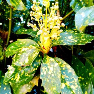 朝の散策中、通り道のお宅のお庭に、アオキの花芽が有りました。