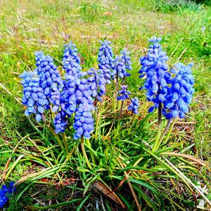 朝の散策路。 仁保川沿いの土手に、ムスカリの花が咲いていました。