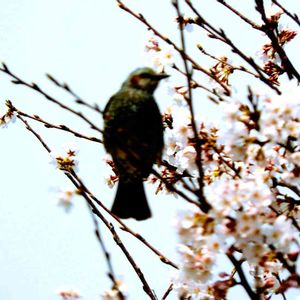 朝の散策路 問田川の土手の桜🌸にヒヨドリが…。
