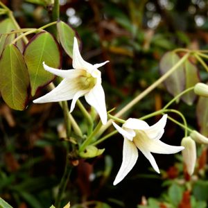 朝の散策路 仁保川沿いで、ムベの花を見つけました。