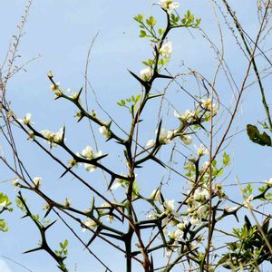 朝の散策路 通り道のお宅に、枸橘の花が咲いていました。