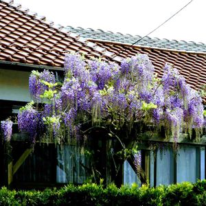 朝の散策路 通り道のお宅の、藤の花が開花しました。