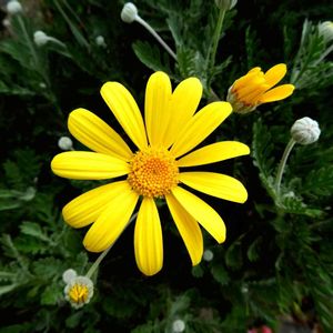 朝の散策路の、通り道のお宅の塀の外に、デージーの花が、咲いていました。