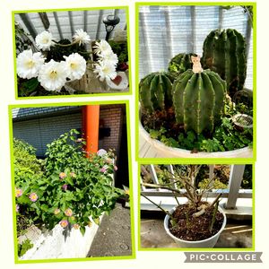 ↖️→数年前に、ご近所さんに頂いたサボテン、今年は沢山咲きました🌵 ↗️→来年まで休眠に入りました🌵 ↙️→先日、垣根の草刈りをしているお店の人が、ランタナを雑草として捨ててしまう…と言ったので「私に下さい❣️」と貰って来たのですが、水に付けっぱなしが長かったのか? ↘️→葉っぱがポロポロ落ちて😢…枝だけに…来年は咲いてくれるかなぁ〜🌸(トホホ) かすかな望みを抱き挿木もしてみました🤩 2021.10.28